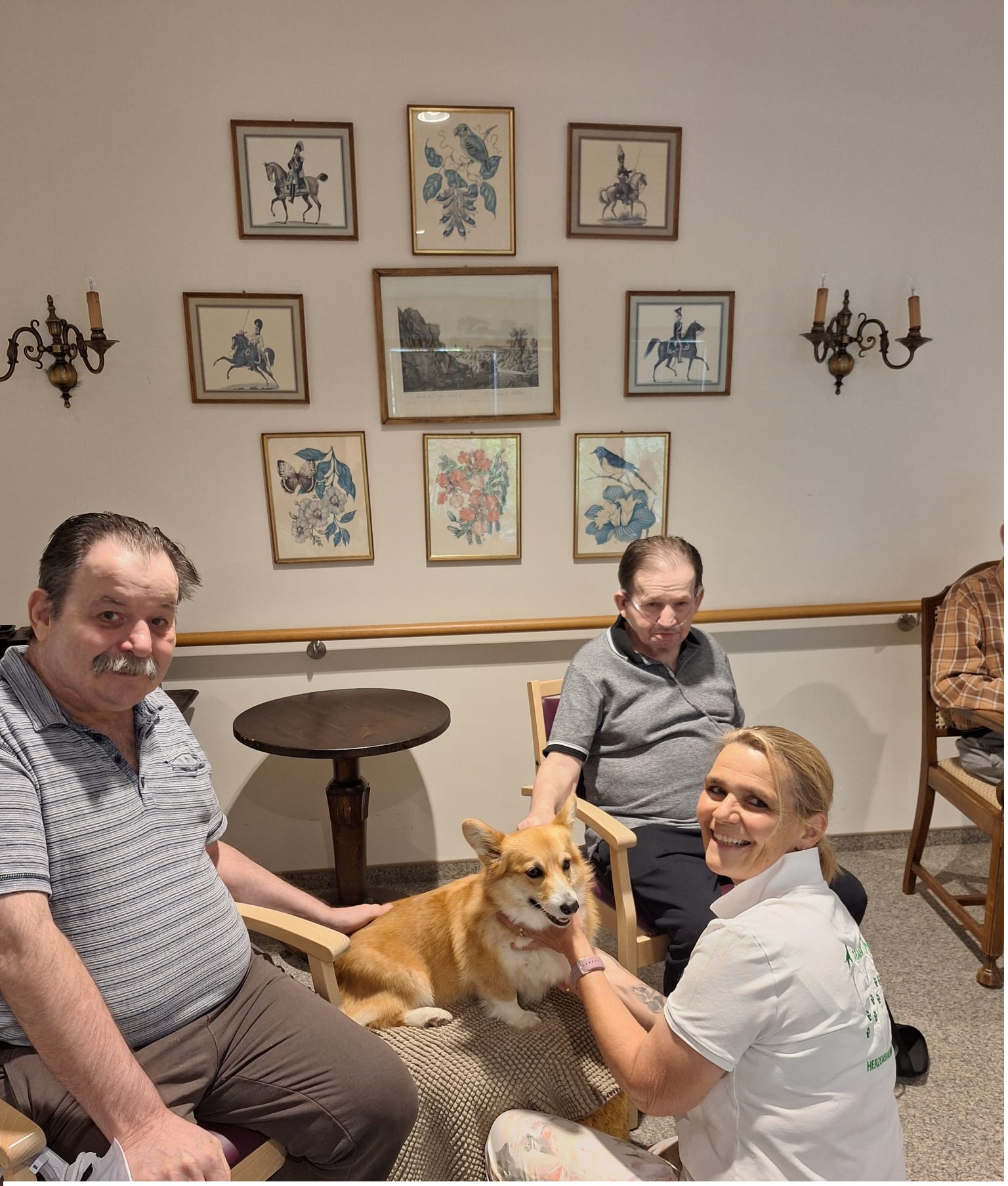 Hundetherapie mit Sabine Oberhauser von „Herzenshunde“ und den beiden Gästen Bruno Rumpold und Horvath Alfred
